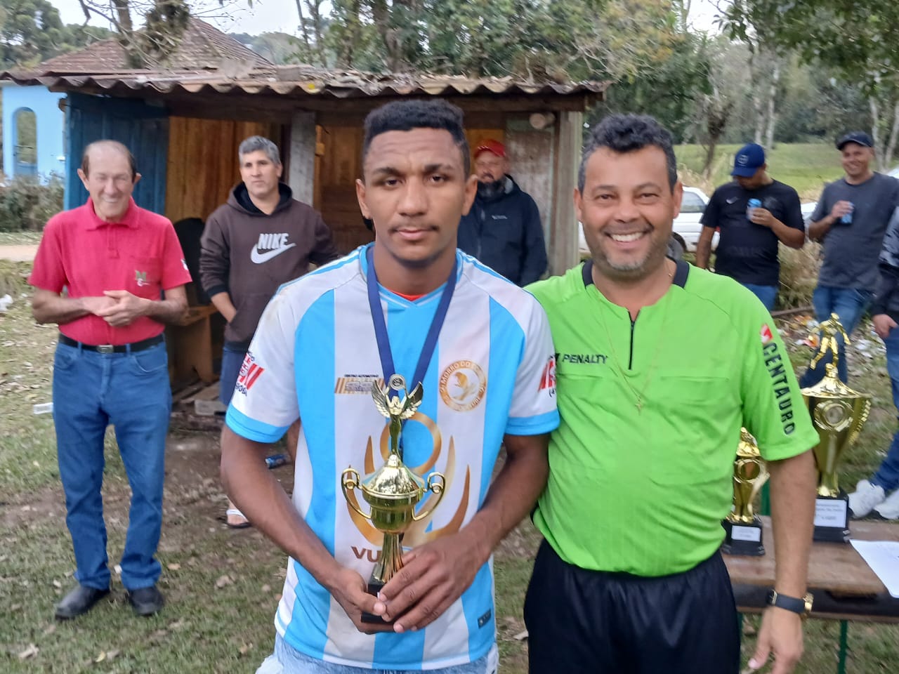 O capitão Samuel do Morro do Corvo recebendo o troféu