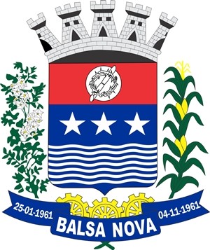 BRASÃO: O azul escuro do escudo é a cor simbólica da justiça, nobreza, perseverança, dignidade, vigilância, firmeza incorruptível. O vermelho escuro para o chefe do escudo, lembra a capa romana com a qual foi coberto Nosso Senhor, após a flagelação. A coroa de espinhos atravessada por uma cana são atributos simbólicos do Senhor Bom Jesus. O besante representa simbolicamente moeda e prata (ou de ouro) e por essa razão é sempre de metal. O besante era usado pelos Cruzados em seus escudos, como sinal de terem lutado na Palestina, em defesa do Cristianismo. As três estrelas de cinco pontas do mesmo tamanho, em metal prata, alinhadas no centro do escudo simbolizam os três fundadores do Município: Ana de Oliveira Chaves, Mathias Vieira de Alvarenga e Euzébio Pereira dos Anjos. As sete faixas ondadas, representam os sete rios que banham o Município: Rio Iguaçu, Itaqui, Verde, Tortuoso, Das Mortes, Assunguí e dos Papagaios. A coroa mural de cinco torres, em metal prata, como portões e janelas de sable (preto) é privativo de cidade (não capitais de Estado). Os dois suportes representados por um ramo de batata florida (batata inglesa) e por um ramo de milho espigado, ambos em sua cor, lembram as duas principais culturas agrícolas. As rodas de dentadas, em metal ouro, na parte inferior do escudo ligadas aos dois suportes, simbolizam a atividade econômica que existe no Município: a indústria (1º lugar), a agrícola (2º lugar) e o comércio (3º lugar). A cor ouro para as rodas dentadas é o símbolo heráldico de fé, riqueza, poder, solidez, prosperidade, constância, amor. A abreviatura cronológica “25-01-1961”, na ponta em flâmula, à direita, indica a data de criação do Município e a abreviatura cronológica “04-11-1961”, na ponta da flâmula, à esquerda, indica a data de sua instalação, com a posse do primeiro prefeito municipal. Fonte: Prefeitura de Balsa Nova.