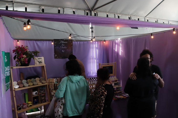 Opinião semelhante foi compartilhada por Maria Luisa Manosso e Tierry Waski, proprietários da Tocos & Trecos. Ambos elogiaram o espaço disponível no estande e a variedade de expositores. "A quantidade de expositores que eles colocaram deu oportunidade para bastante gente, então esse ano a estrutura grande deu para ter mais expositores do que nos outros anos", disse ela, completando: "temos uma visibilidade boa aqui e como muita gente frequenta o parque, conseguimos divulgar bem o nosso produto".