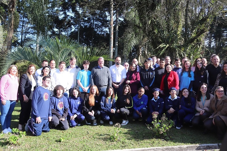 Nossos estudantes estão crescendo e ganhando o mundo, um orgulho para Campo Largo e uma grande oportunidade para eles. Essa foi a sensação geral após o encontro realizado na manhã desta quinta-feira (21) na sede do Executivo Municipal. O prefeito Mauricio Rivabem e a vice-prefeita Chrystiane Chemin, junto com o secretário estadual da Educação, Roni Miranda, receberam os 19 estudantes do município classificados no processo seletivo do Programa Ganhando o Mundo, que envia alunos da rede estadual de ensino para intercâmbios em países de língua inglesa.