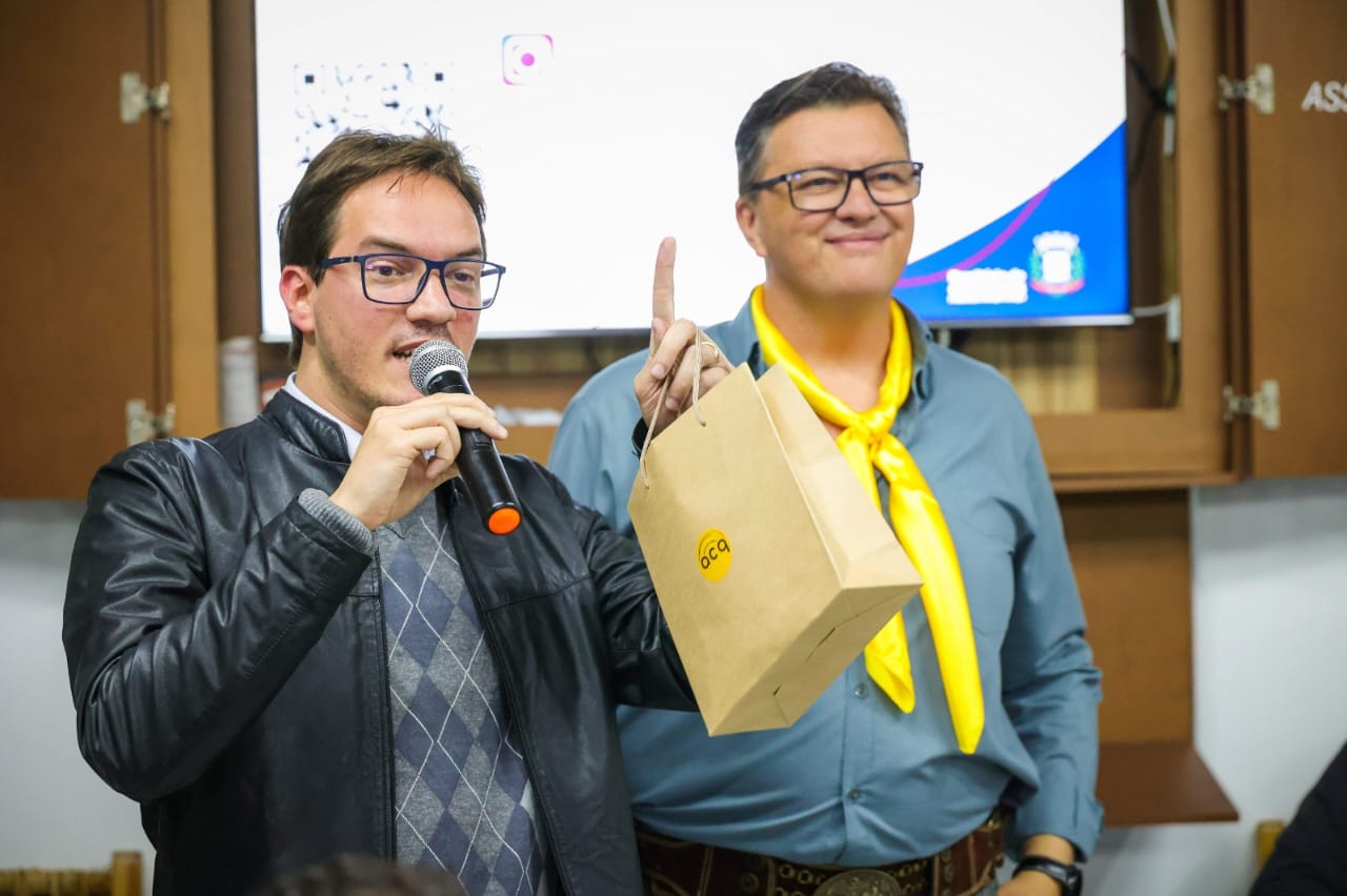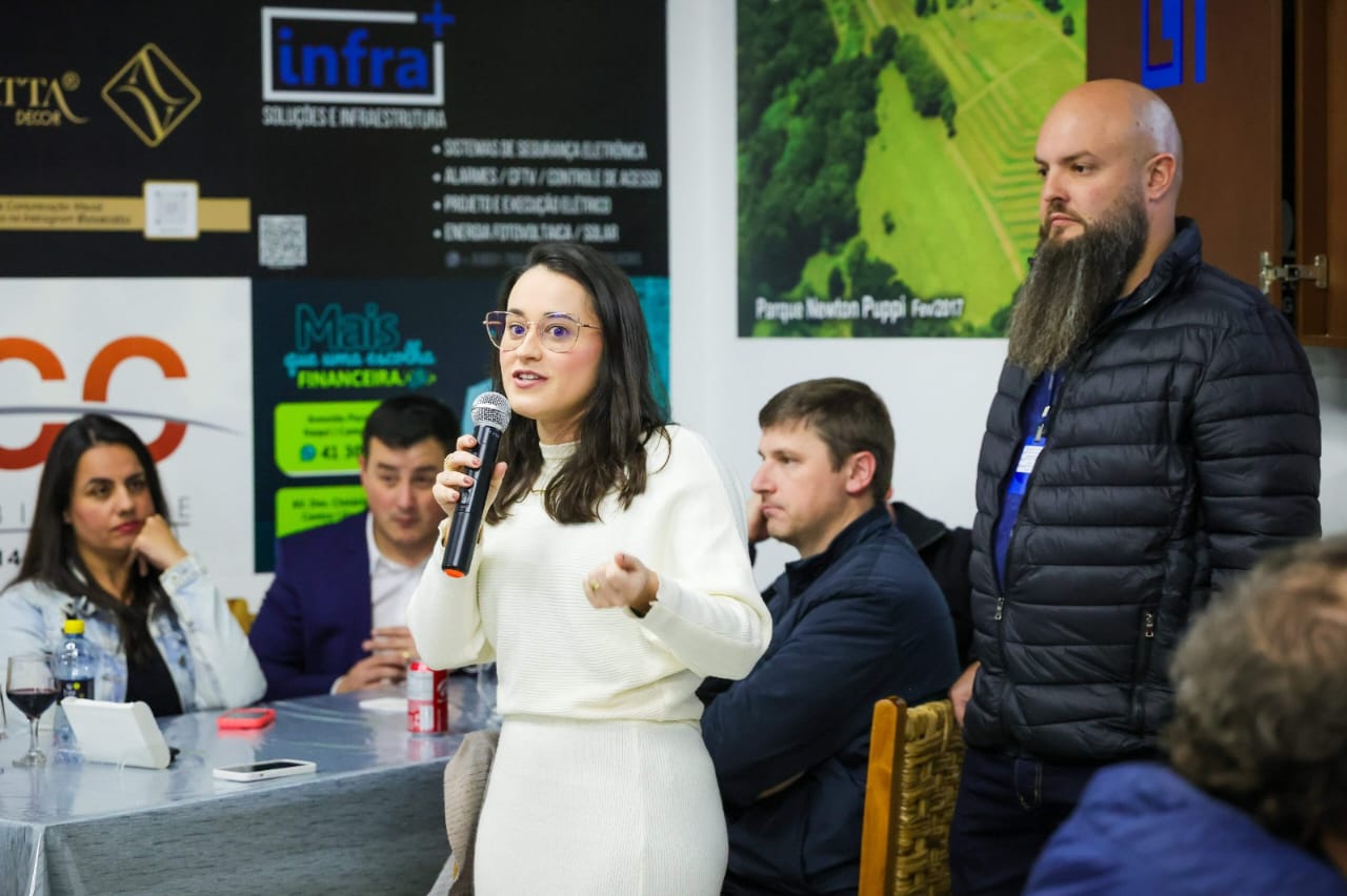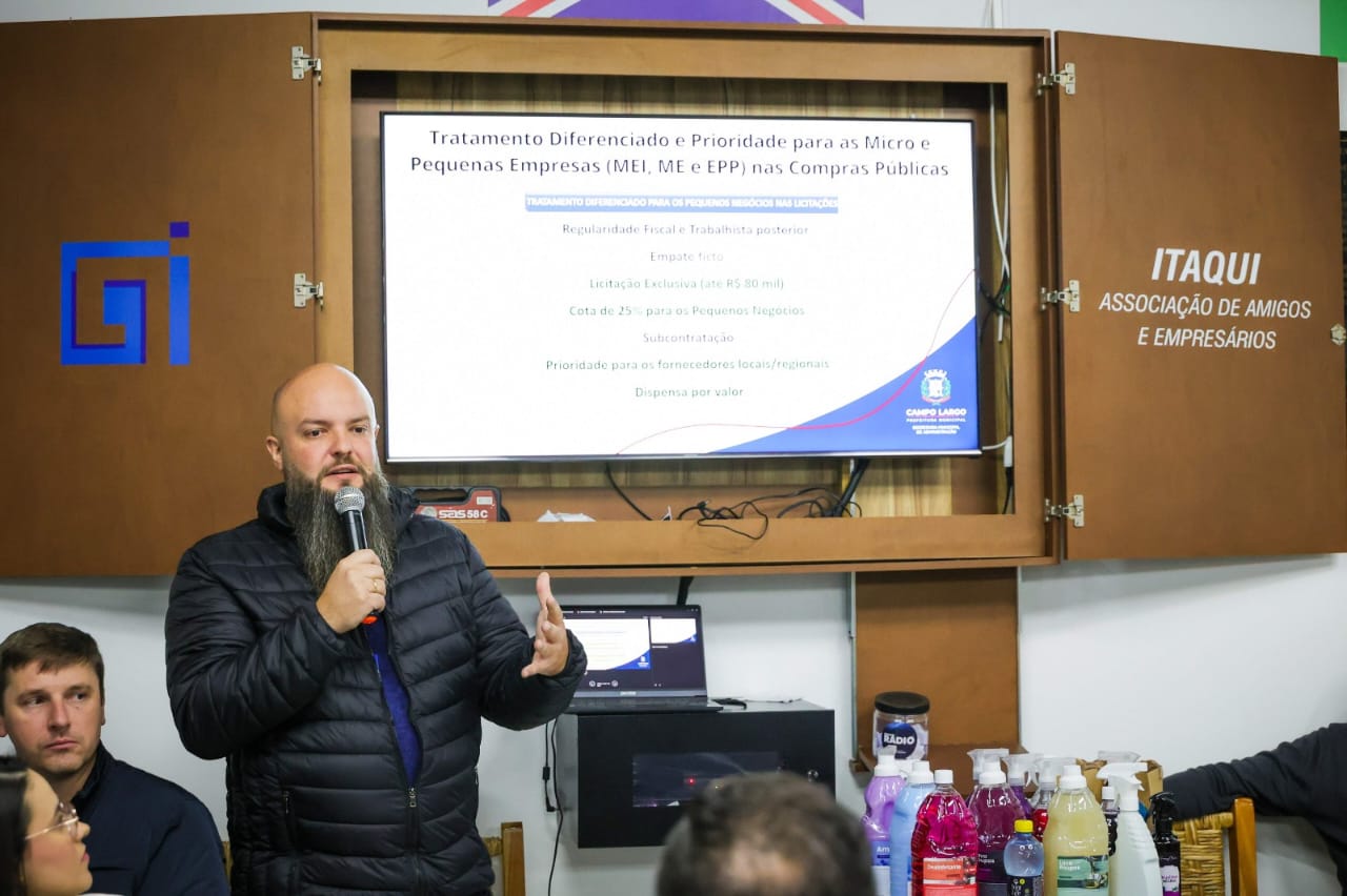 A Secretária de Administração, Isabela Rivabem, usou o espaço para apresentar o Escritório de Compras do município e chamou o responsável pelo escritório, Alex da Rocha que falou das facilidades que os empresários campo-larguenses tem em vender para a prefeitura, através de licitações com o apoio desse escritório.