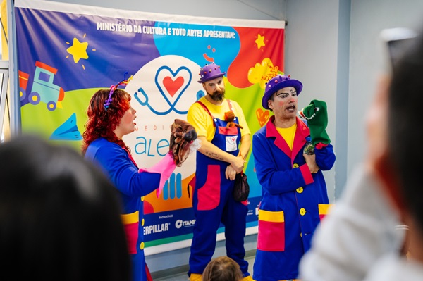 “Conheci o Projeto Medicando Alegria e posso dizer que foi um sopro de alegria em meio a tanto sofrimento. Eles trazem leveza, risos, distração, não só para as crianças, mas para a família inteira. Em dias difíceis, aquele momento é alívio. Meu marido interagiu com os artistas, ele gostou muito, ficou emocionado. O ambiente do hospital, que muitas vezes é triste e pesado, ganha cor e aconchego com esse trabalho. Hoje eu só posso agradecer pelo projeto, pela arte e esse cuidado”, ressaltou Luísa.