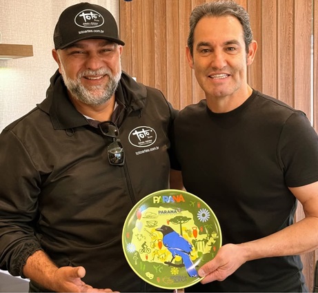 Como a identificação geográfica foi um dos temas originais apresentados na 32ª Feira da Louça de Campo Largo, nada melhor que receber um presente especial do artista plástico Toto Lopes. O presidente da Câmara de Campo Largo, Alexandre Guimarães recebeu das mãos do idealizador da Fama da Louça, um prato decorado com temas paranaenses. O presente que sem dúvida alguma possui raízes familiares na evolução da cerâmica e da feira no município.