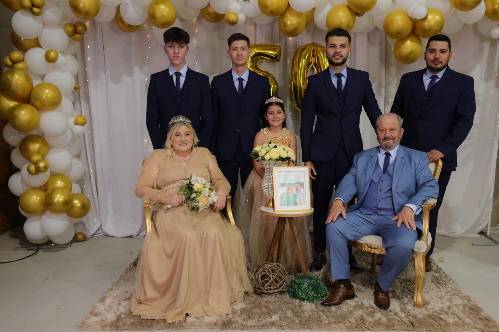 Aconteceu, no dia 20 de setembro, uma linda festa na Capela São Benedito, para comemorar as Bodas de Ouro de Alzira e Neco. Rodeados por familiares e amigos, o casal desfrutou de momentos de muita diversão e alegria, contagiando todos os presentes. Foi celebrada a notável jornada de um casal que construiu uma vida inteira junto, um exemplo inspirador de amor, cumplicidade e dedicação. Meio século de história, marcado por alegrias, superações e um companheirismo que se fortaleceu a cada desafio, transformando um projeto de vida em um tesouro valioso. Ao longo destas cinco décadas, o casal demonstrou que o amor não se trata de perfeição, mas de constante construção, respeito e perdão. Cada experiência, cada aprendizado, contribuiu para a formação de uma união que se tornou referência para todos que os rodeiam, um símbolo da fidelidade e do amor verdadeiro. Que esta celebração não seja apenas um olhar para o passado, mas um reconhecimento do belo legado de afeto e união que vocês criaram. Que a força do vosso amor continue a inspirar e a ser um farol de esperança. Parabéns por esta conquista extraordinária!!! Que muitos outros anos de felicidade e amor sejam vividos!!! Confira nas fotos esta linda celebração de amor...