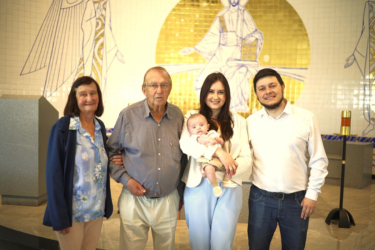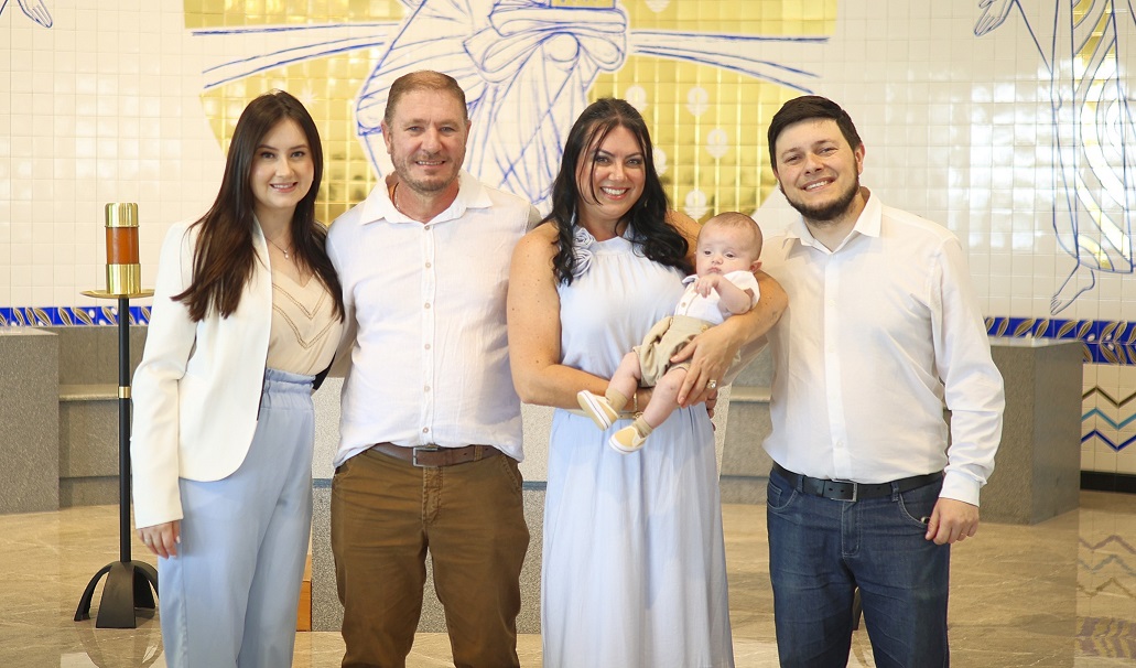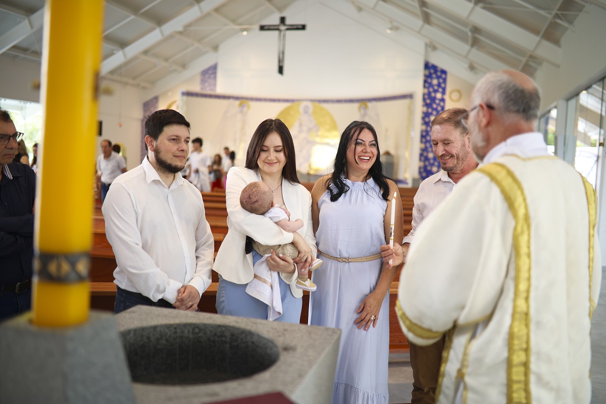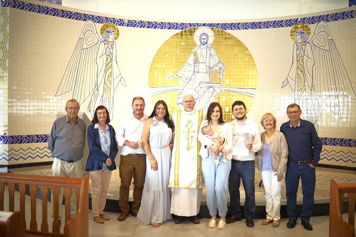 No dia 1º de novembro, na Capela Nossa Senhora de Fátima, foi celebrado o batismo do Miguel, filho de Mayra e Iohanan de Carvalho. A cerimônia contou com a presença dos padrinhos Silmara e Claudinei Zattera; além dos avós maternos (Lourdes e Ary Melo) e avós paternos (Bernadete e Genivaldo de Carvalho), que se uniram em oração neste momento de fé e alegria. Foi um dia muito especial para toda a família, marcado pelo início da vida cristã do pequeno Miguel, agora acolhido na graça de Deus.