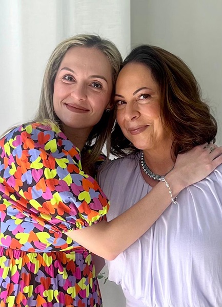 A aniversariante com a filha Carla.