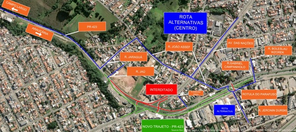 Outra mudança importante é a ligação em nível da PR-423 com a Rua Jaú, além do prolongamento em nível da rotatória do Parafuso, permitindo conexão direta com a Rua Boleslau Wzorek durante o período de obras.