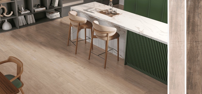 Inspirada nas diferentes tonalidades do carvalho, madeira apreciada por suas tonalidades e a alta resistência, em 2025 a Incepa lançou a série de mesmo nome que reproduz, com veracidade, os veios, nós e suas nuances. “O apreço por essa madeira é bem interessante também por conta da sua elegância e durabilidade, já que uma árvore dessa espécie pode ultrapassar centenas de anos de vida. Inclusive, há relatos que algumas já atingiram um milênio”, argumenta a marketing manager.