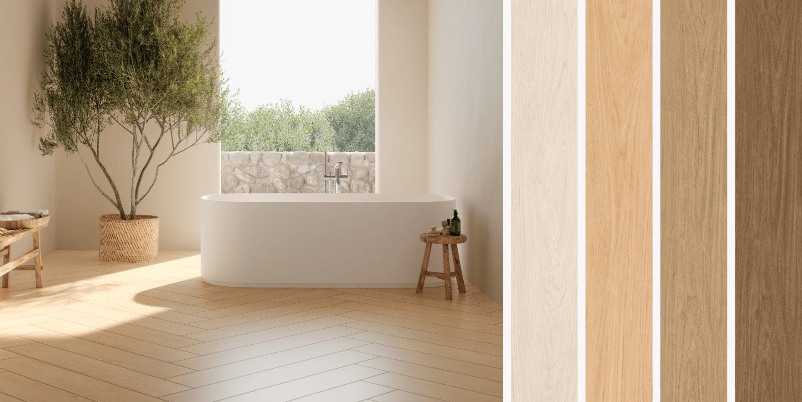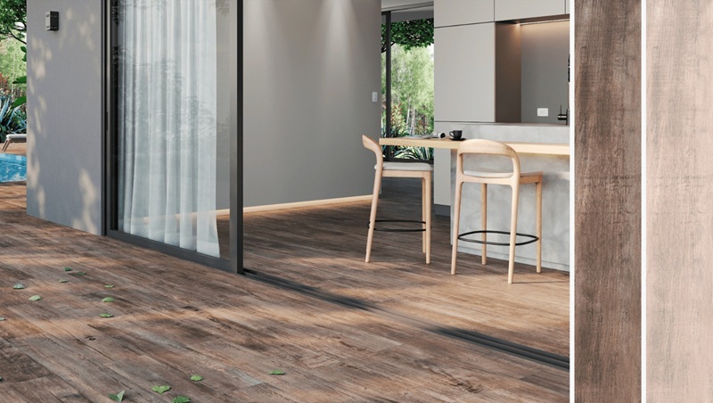 A madeira natural, com toda sua rusticidade e textura, é o ponto de partida da Série Devon. Suas peças apresentam veios marcantes, efeito lixado e nuances destonalizadas que destacam ainda mais o formato longitudinal de 20 x 120 cm.